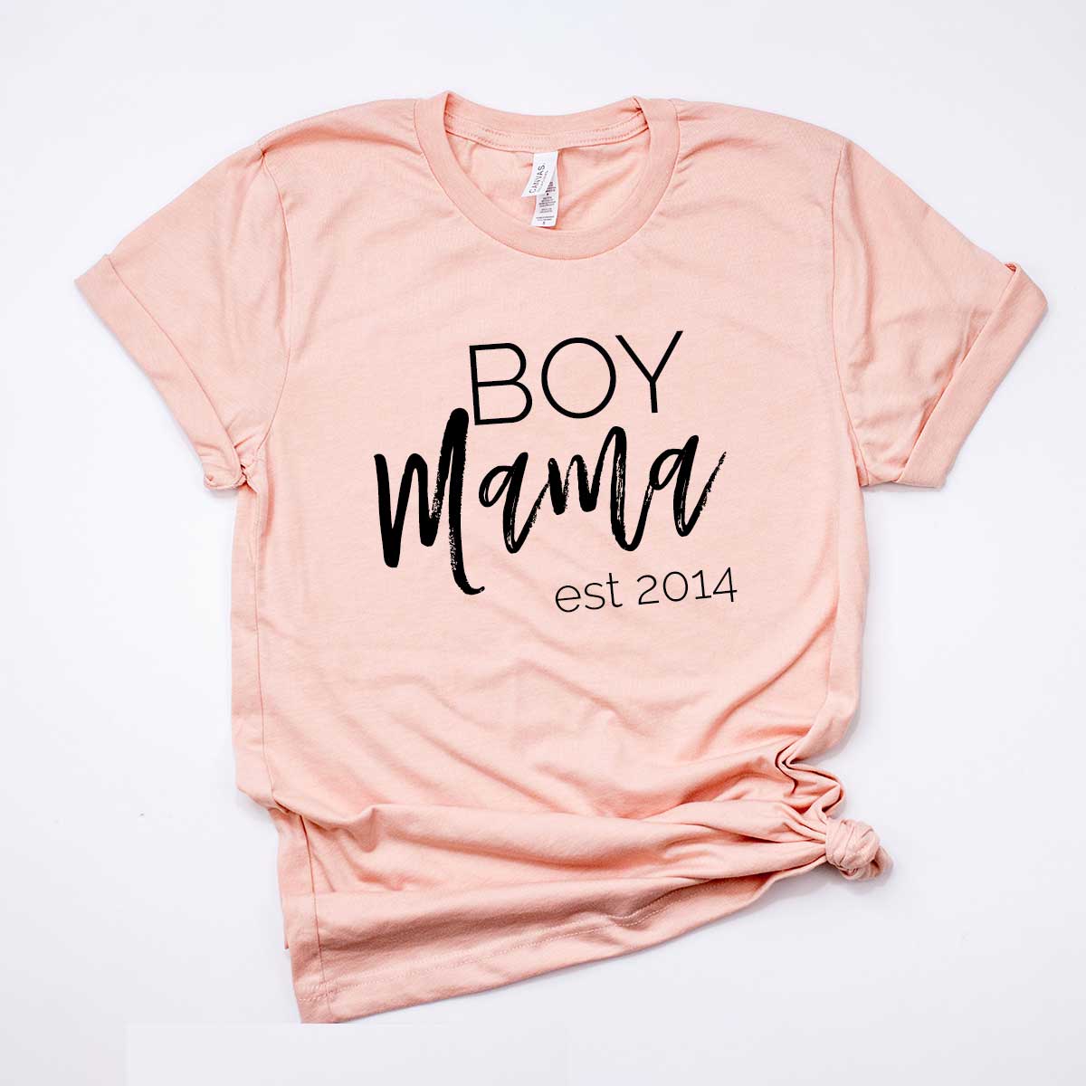 Boy Mama est Personalised date - Peach t-shirt