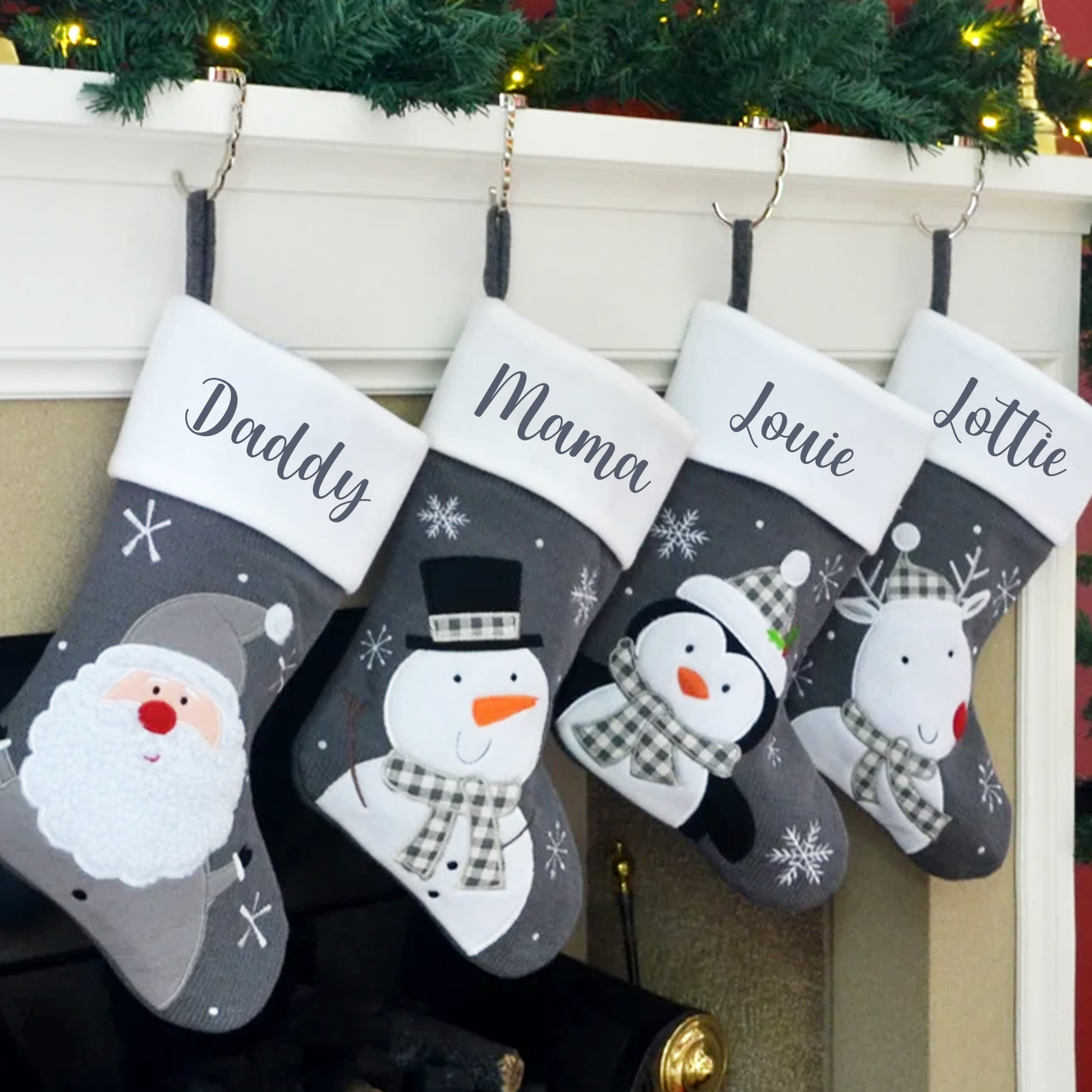 - Grey Christmas stocking - with optional character on front.