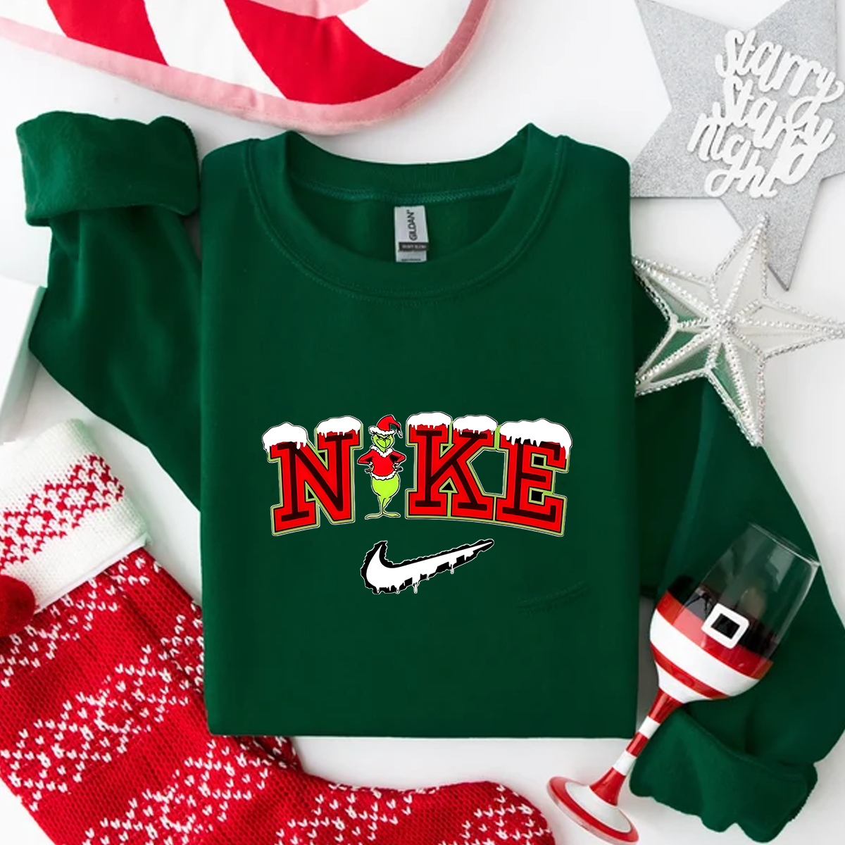 Retro Grinchy Snow Design Christmas Jumper Sweater
